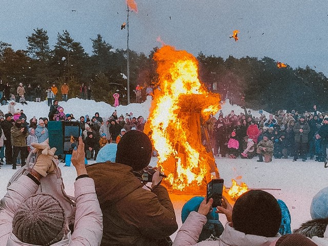 Празднование Масленицы сопровождалось пышной трапезой, где главным блюдом являлись блины, а также народными гуляньями с кулачными боями, различными играми и сжиганием чучела.